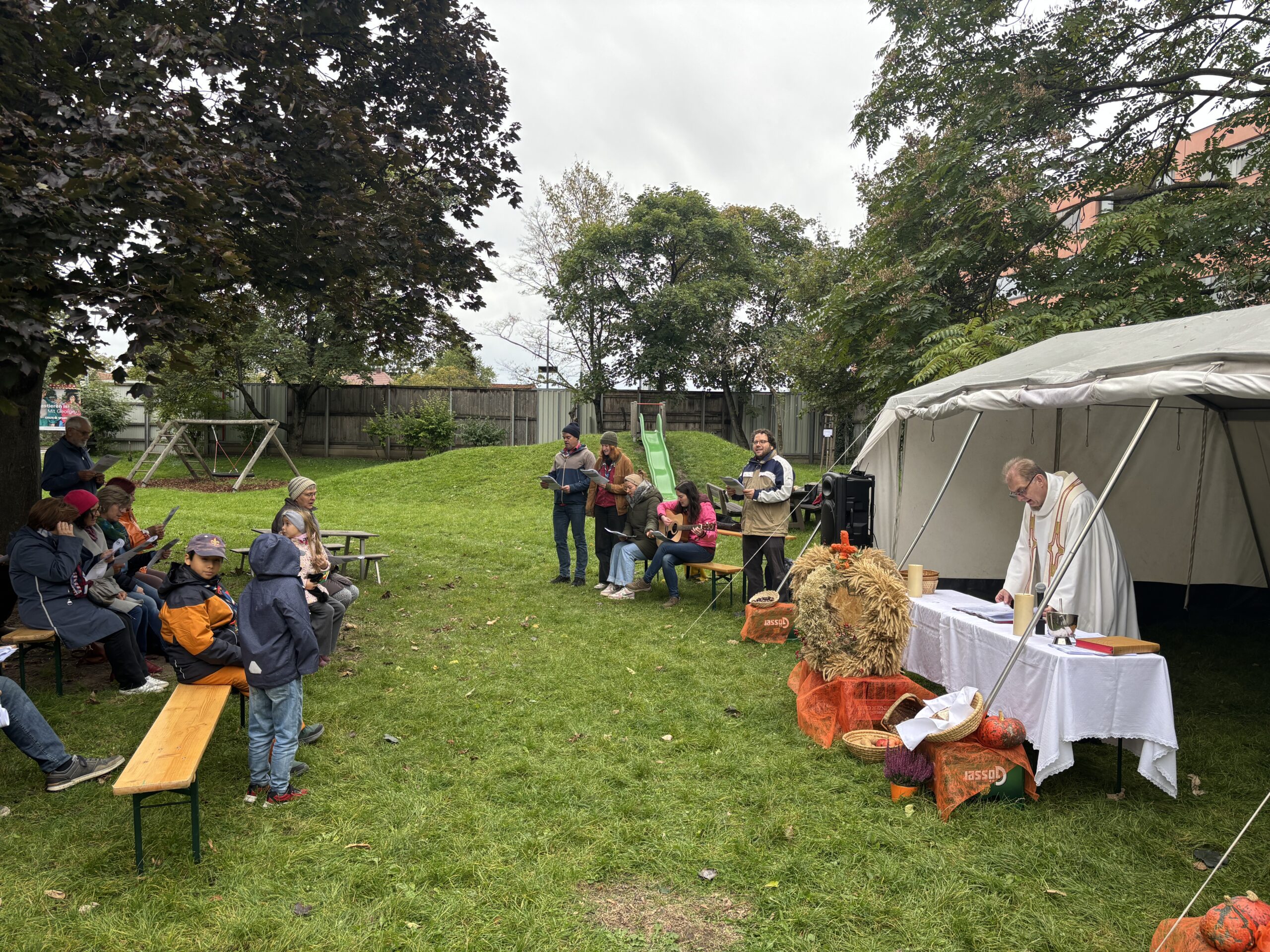 Beim Erntedankfest am 5.10.2025 im Pfarrgarten haben wir dem Wind getrotzt, eine wunderbare Feier mit den Pfadfindern genossen und gesungen: „Rückenwind“ und das Pfadi-Lied „Mir san die Zwaradreißga, nananana“. Danach gab’s Kaffee, Kuchen und Gegrilltes. Ein herzliches Danke an die Pfadfindergruppe 32 Pax Hill und alle Beteiligten!