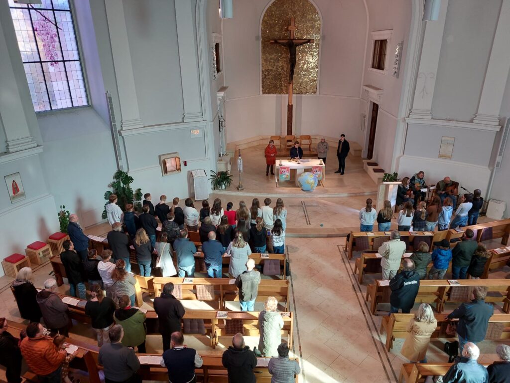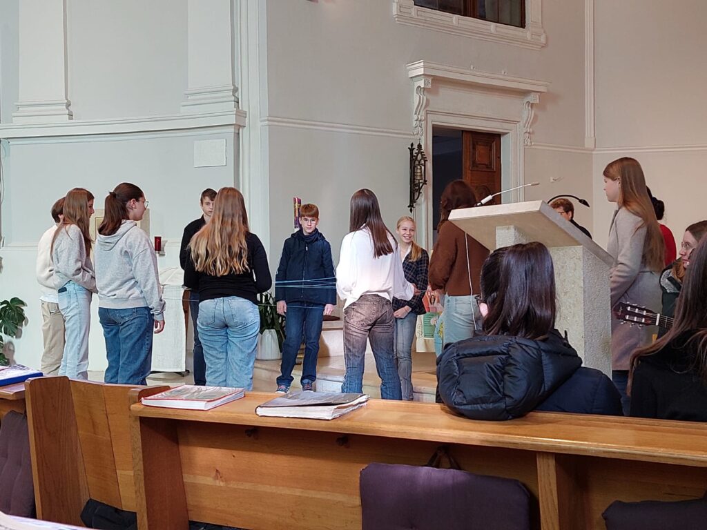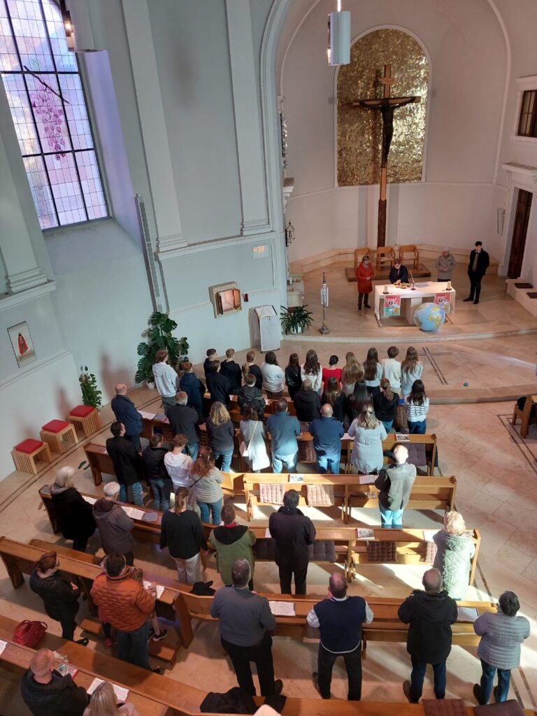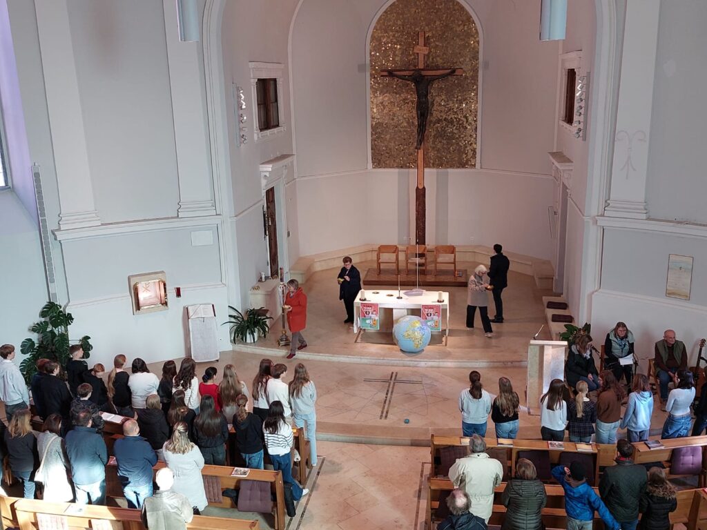 Am Weltmissionssonntag (19.10.2025) gestaltete das Firmteam gemeinsam mit unseren 29 Firmkandidatinnen und Firmkandidaten eine Wortgottesfeier, in der sie die Vernetzung zwischen uns und unsere Verbundenheit mit Gott mit einem Wollfaden darstellten. „Die Hoffnung auf Gott ist ein fester Anker für die Seele“ (Hebr 6). Der Weltkugel-Ball wurde im Kreis weitergereicht, denn „Wir“ tragen Verantwortung für die Welt! Ins Gebet schloss die Pfarrgemeinde den dieser Tage zum Wiener Erzbischof erwählten Administrator der Erzdiözese Josef Grünwidl ein, bei dessen Namensnennung spontaner Applaus ausbrach. Passend zum Motto „Eine Welt für alle“ wurden von den Firmlingen danach Fair-Trade-Waren angeboten. Alle Schokoladen und Chips wurden verkauft und die eingesammelten Spenden gehen an das „missio“-Sozialprojekt im Südsudan.