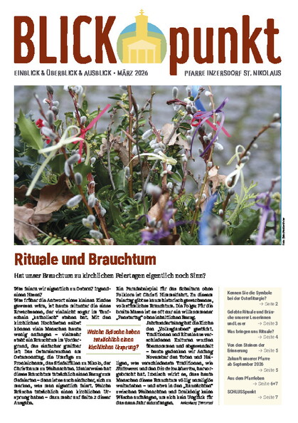Der BLICKpunkt ist eine von der Pfarre Inzersdorf finanzierte und herausgegebene Zeitschrift, die Einblick, Überblick und Ausblick bieten will: Mit Berichten aus der Pfarre und dem Grätzel, Debatten und Meinungsartikeln, Gedanken zum Innehalten, Historischem und etwas zum Schmunzeln.